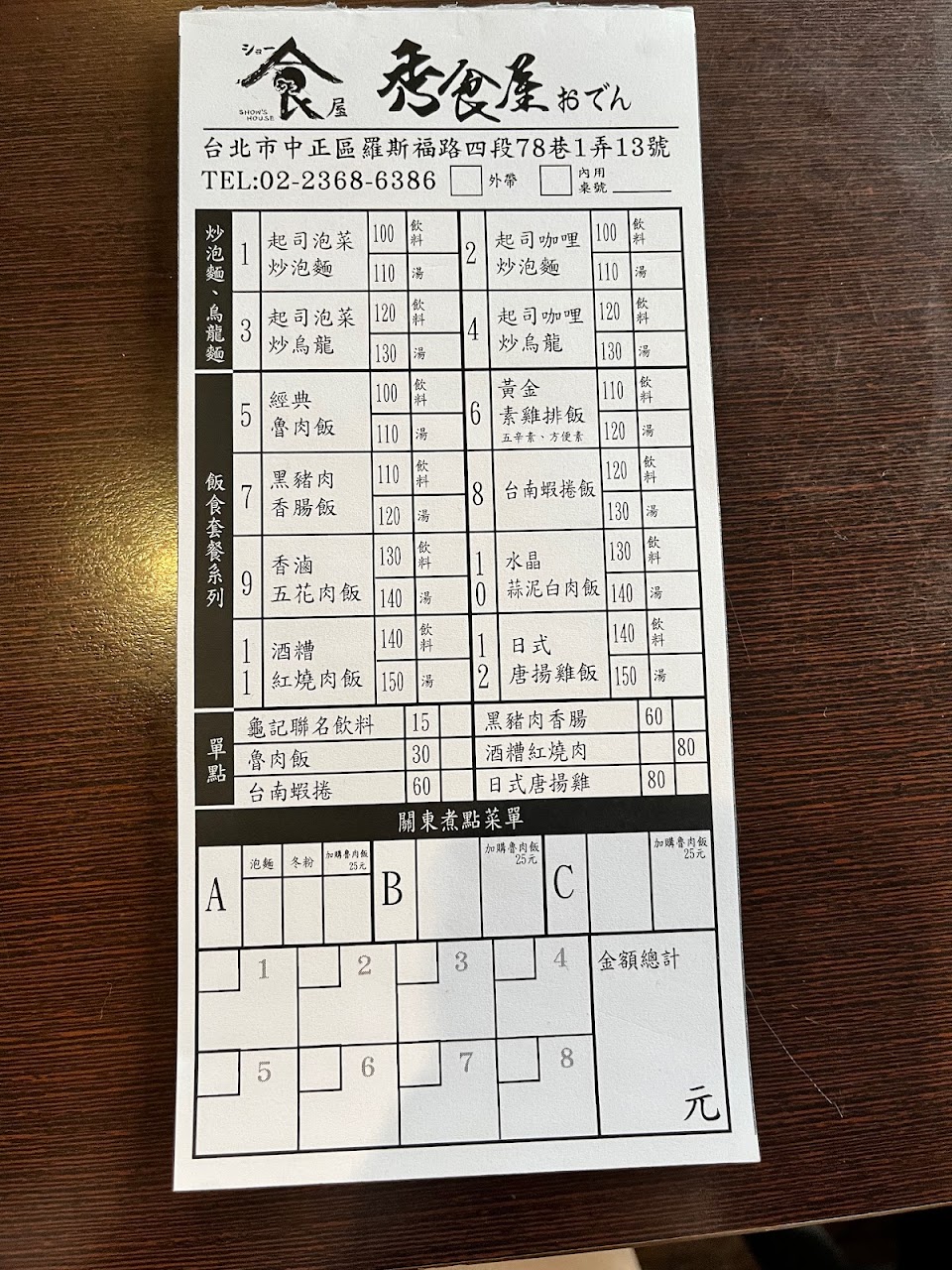 2024最新在地推薦餐廳的菜單_秀食屋Shows House -外送飯盒/關東煮專賣店的菜單、圖片