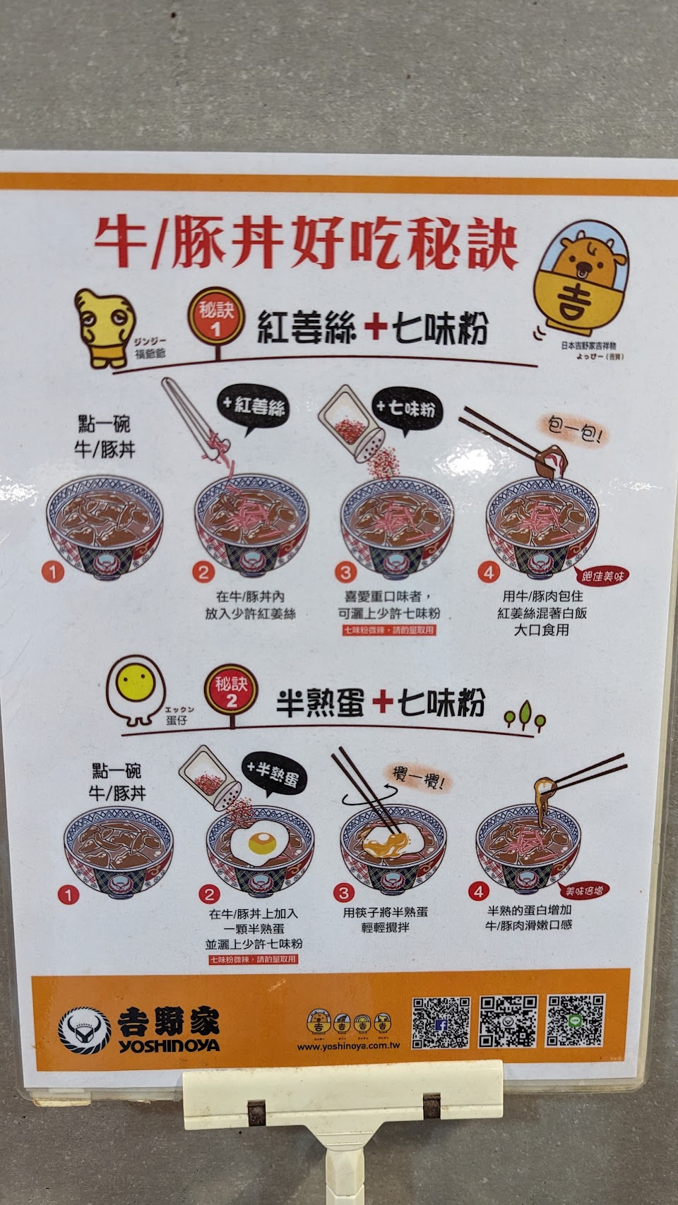 台灣吉野家比馬尼拉吉野家好很多。在這裡,你可以盡情享用醃漬薑。在馬尼拉,他們會向您收取額外的生薑調味料?