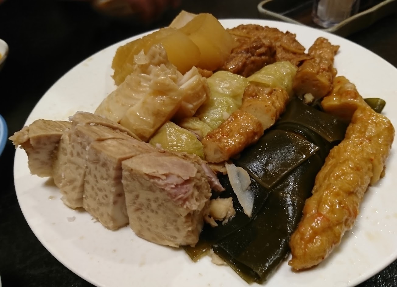 高麗菜捲裡面包的是豬絞肉,不是一般常見的魚漿,厚實的牛蒡甜不辣也很推。
