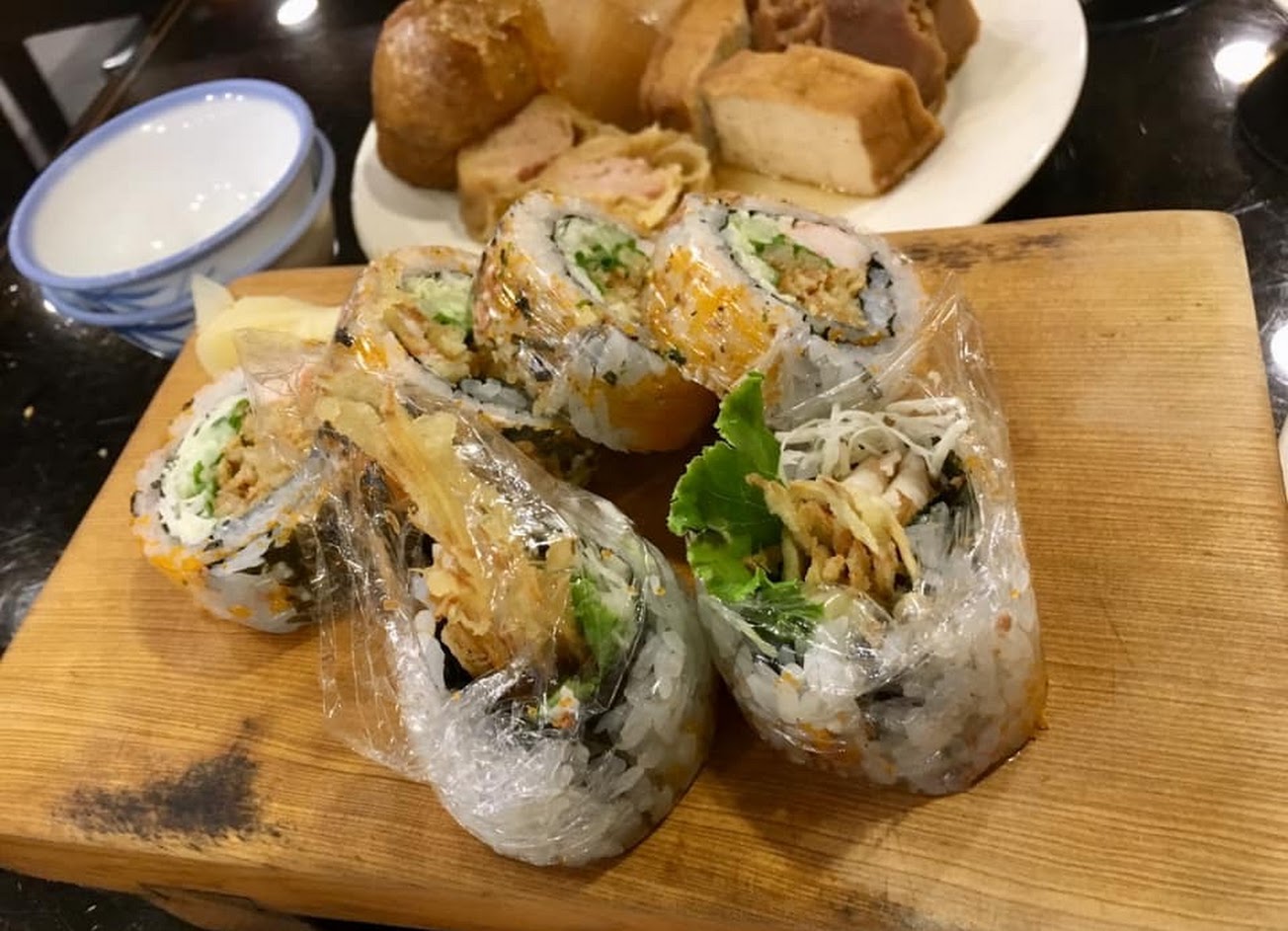 牛蒡甜不辣與壽司都好吃。