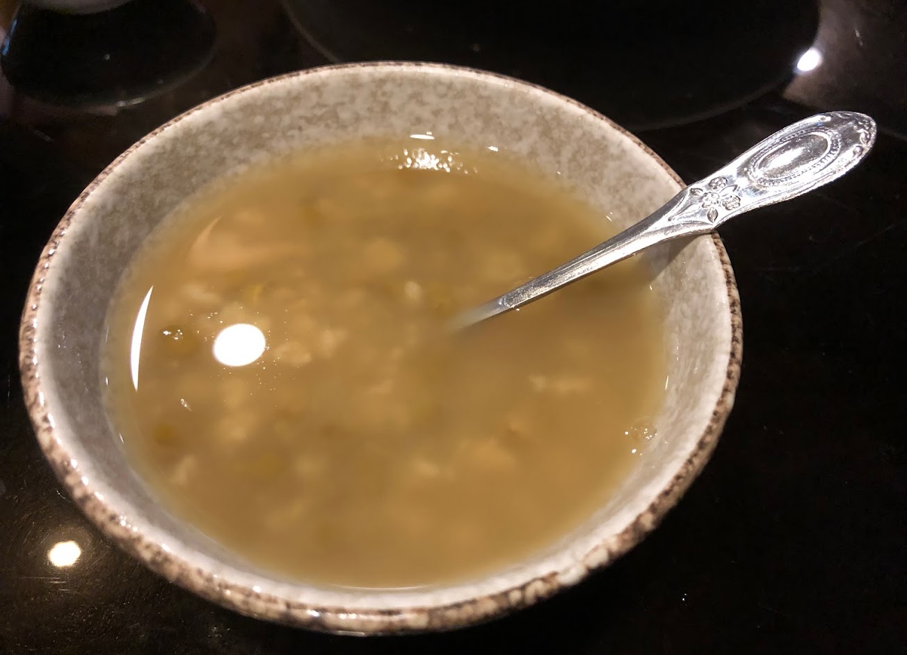 用餐完還有甜點 熱的綠豆薏仁湯 很貼心 綠豆偏涼 煮熱的好喝