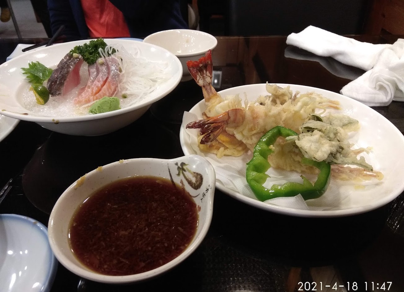 這次前來點了豬排親子丼、鮭魚炒飯、野菜天婦羅。