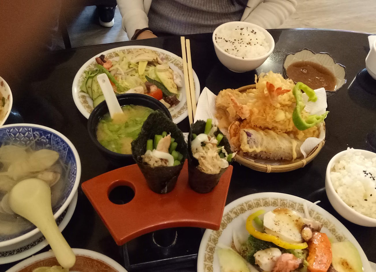 定食cp值高!大盤沙拉,手卷,茶碗蒸,湯,主菜及一碗飯…分量不少,天婦羅好吃!! 可惜座位不甚理想,裡面服務的阿姨不太理人,平日中午去可能會吃得不愉快