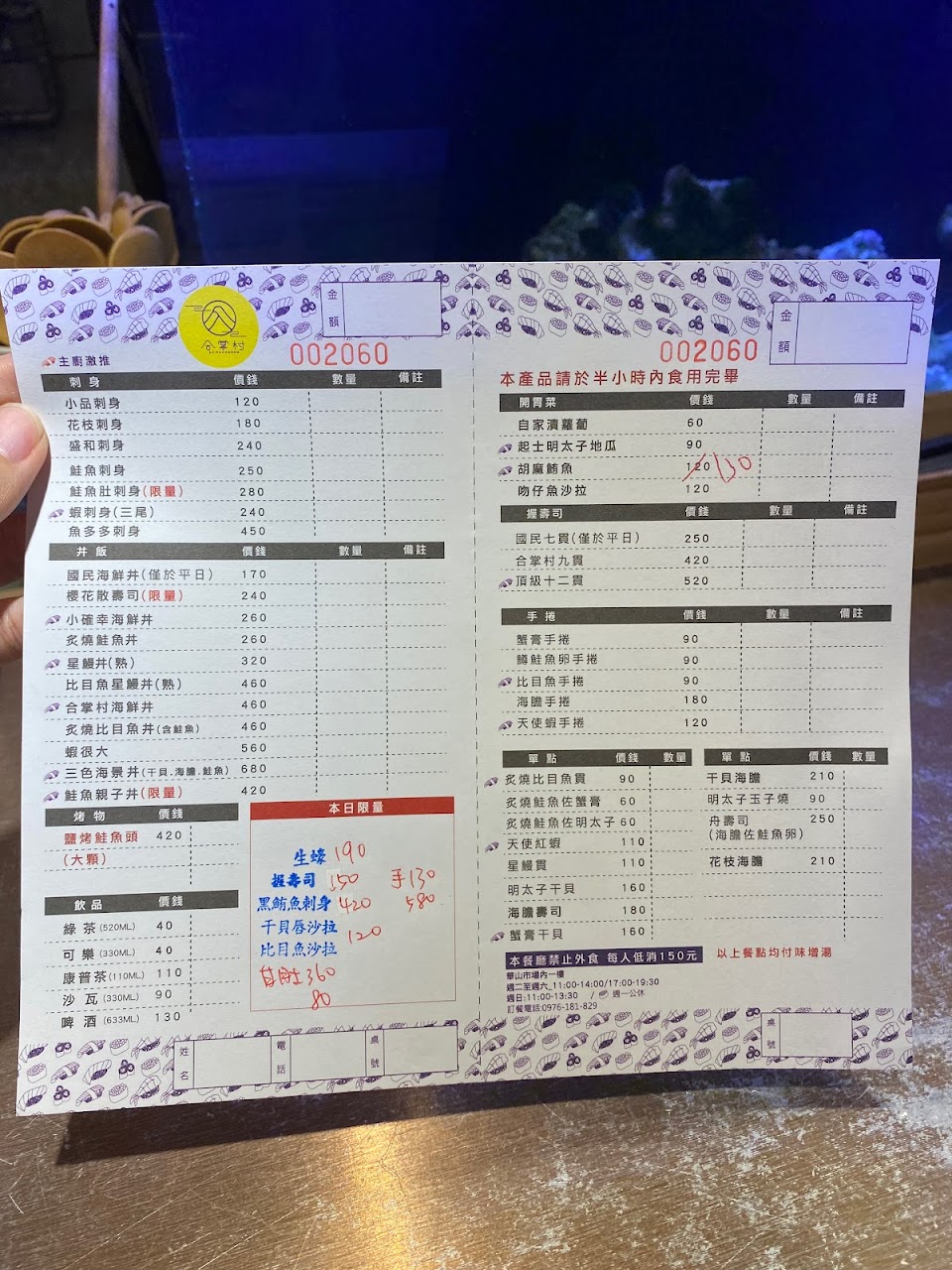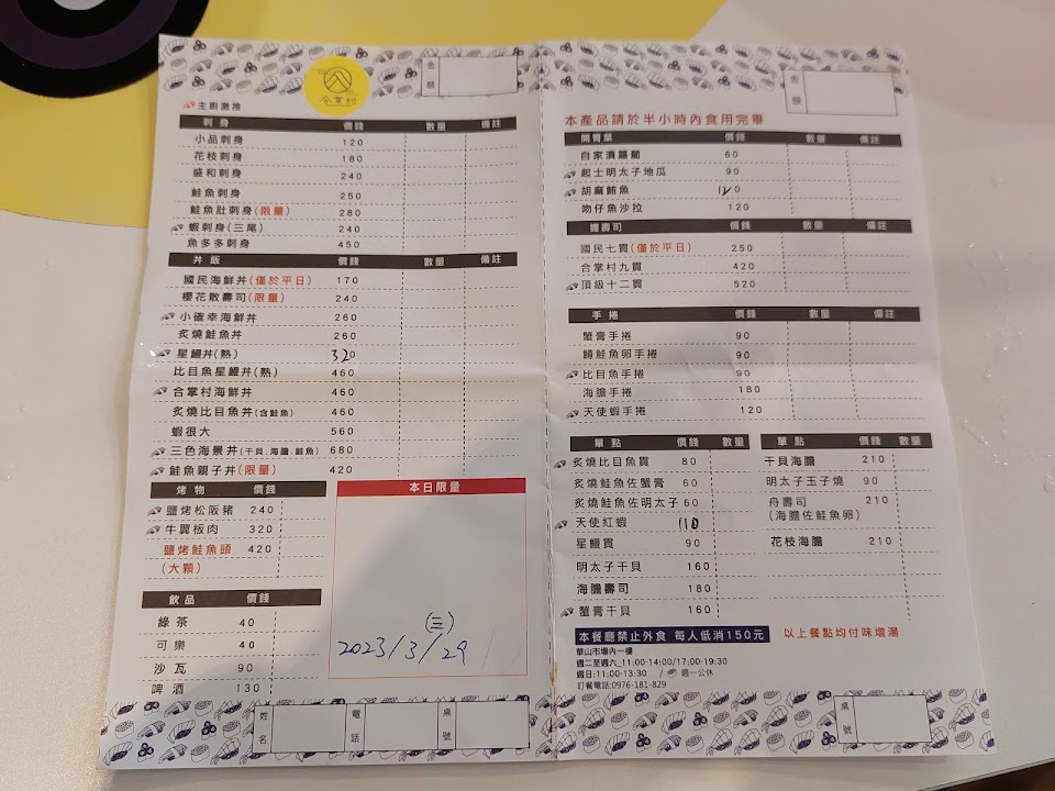 每日都有限量菜單