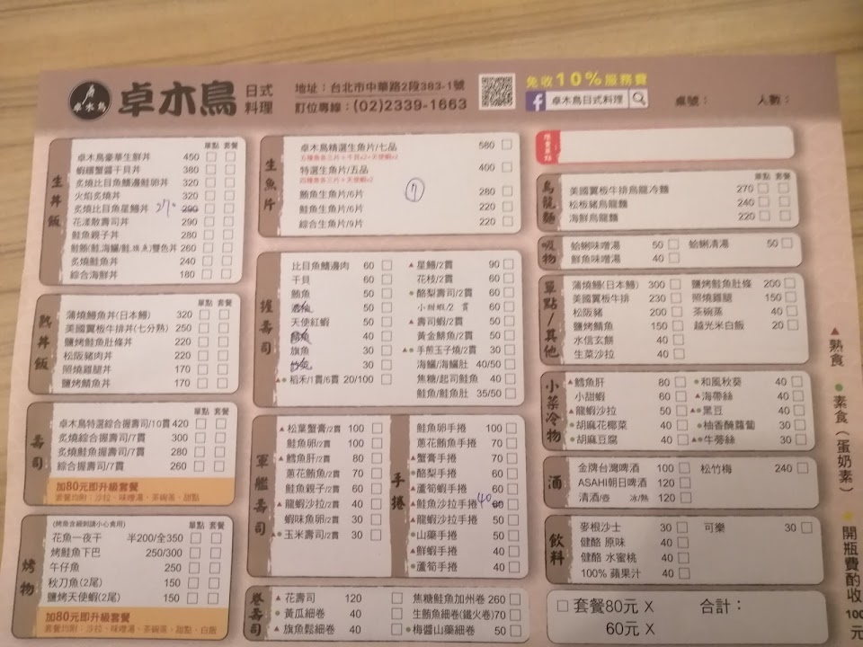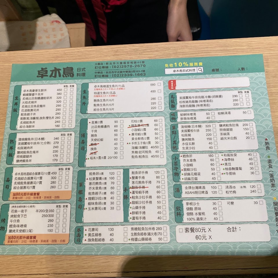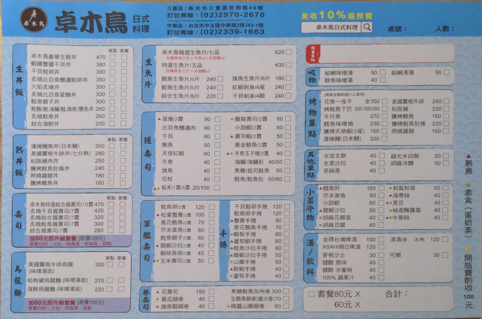 2024最新在地推薦餐廳的菜單_卓木鳥日式料理中華店的菜單、圖片