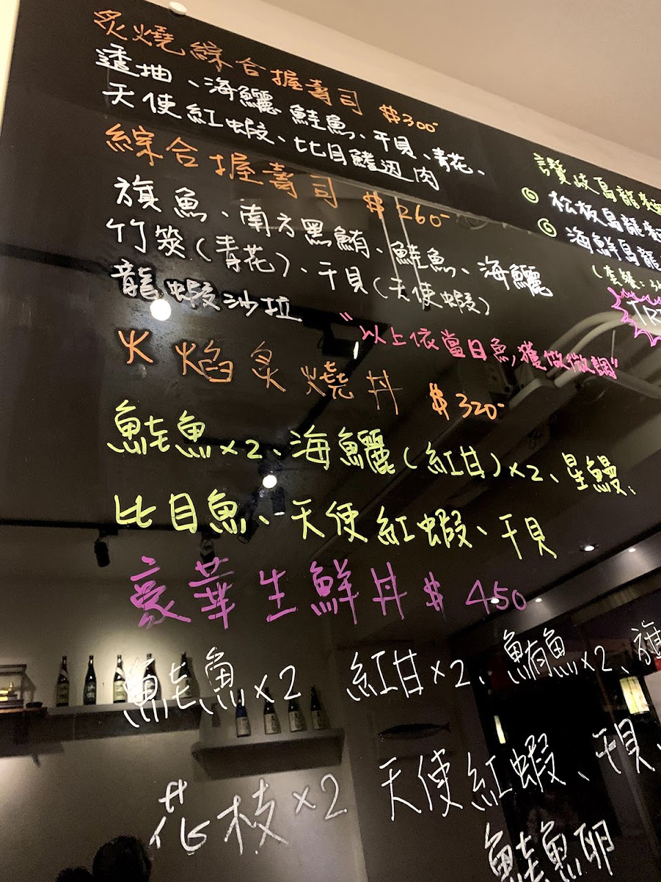 生魚片、鮭魚加州卷都好吃?芥末不會很嗆剛剛好,記得先訂位呦!生意很好?