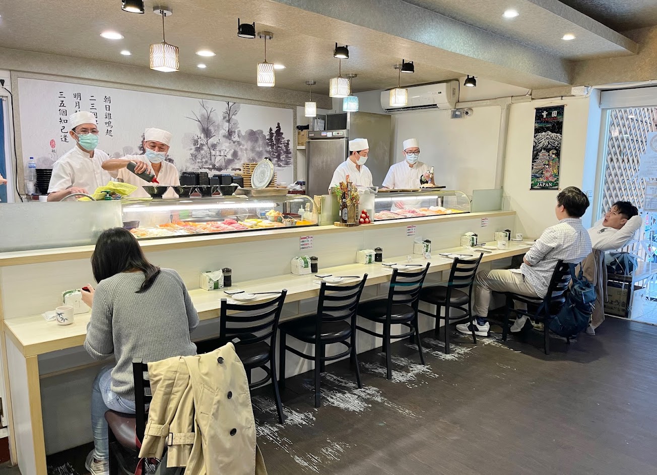 整間店蠻大的 外場三位店員 內場有四位壽司師傅 如果是比較喜歡安靜的人 建議可以坐在吧台的右側 因為吧台左側是店員拿菜的進出位置 所以在用餐的時候會因為店員走動比較頻繁而稍受干擾