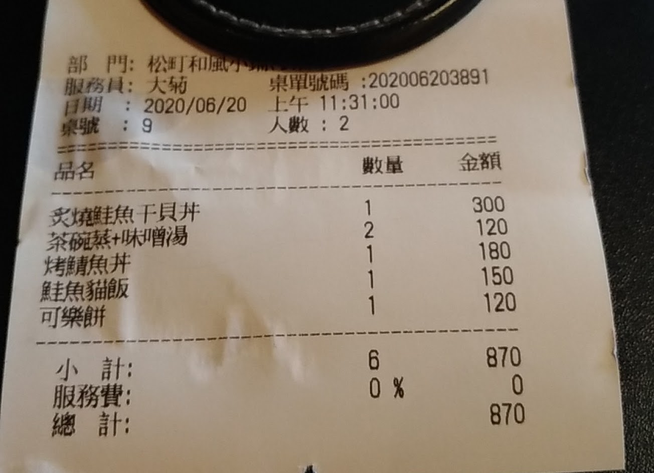 食材新鮮,使用日本海膽,CP值高,免服務費,服務親切。5大人,1小孩,消費2300元。