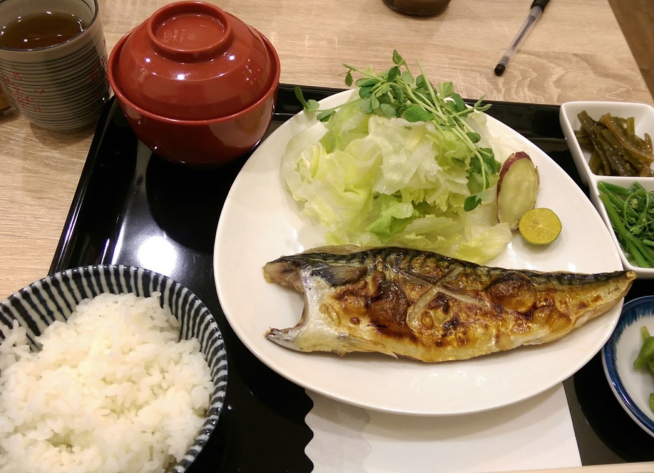 點了烤鯖魚定食,現烤需要一點時間,雖然看起來普通但每一道菜很做的很用心很好吃,魚烤的很香多汁好吃,白飯跟味噌湯可以續,有機會再來嚐試其他定食。