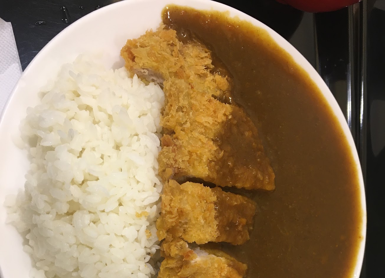 點了炸雞定食180元、豬排咖哩120元。炸雞像是日式炸雞,有裹粉,裏面的雞肉軟嫩滑口,完全不會柴,不像是使用雞胸肉的部位,味道不錯,雞塊體積大,但粉漿的比重也不小,如果少些粉漿會更好。定食會附三樣冷的小菜,一碗味噌湯,不,大概只有半碗份量的湯,不理解這麼便宜的湯為什麼給這麼少,裏面也沒豆腐什麼的東西,還有一碗飯和一些沙拉,冬天我是不太喜歡這種冷菜,除了冷,口感不好也沒菜香。