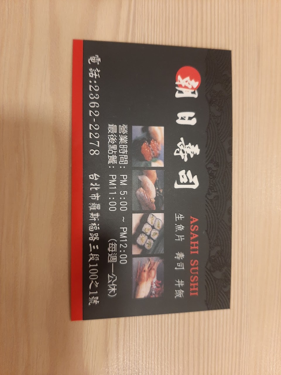 朝日壽司:羅斯福路著名的日本小館,常常人潮眾多,真的有日本師傅。味道好吃,品項也很多,烤物厲害、壽司沒話說,價格也適中,在附近也有另一分店:朝鑫壽司。