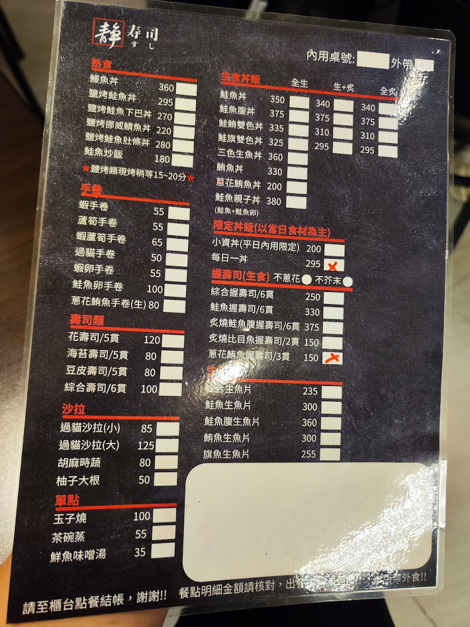 2024最新在地推薦餐廳的菜單_靜壽司的菜單、圖片