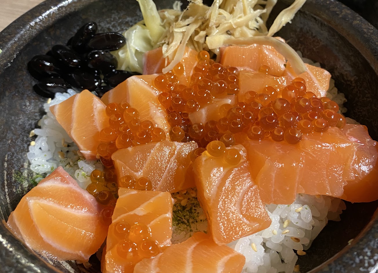 點了鮭魚親子井飯、生魚片新鮮、還贈送免費的味噌魚湯、非常鮮甜美味、覺得價格合理、好吃值得再去