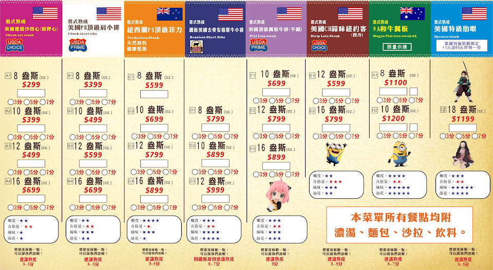 不過,本來菜單上就有寫是嫰度四顆星 含筋量一顆 風味三顆 油花一顆