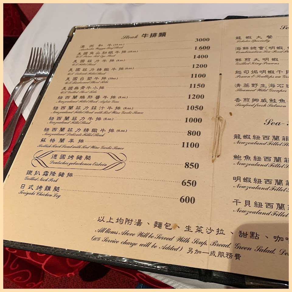 老牌牛排館,最愛它們家洋蔥湯跟羊排,但價格偏高。