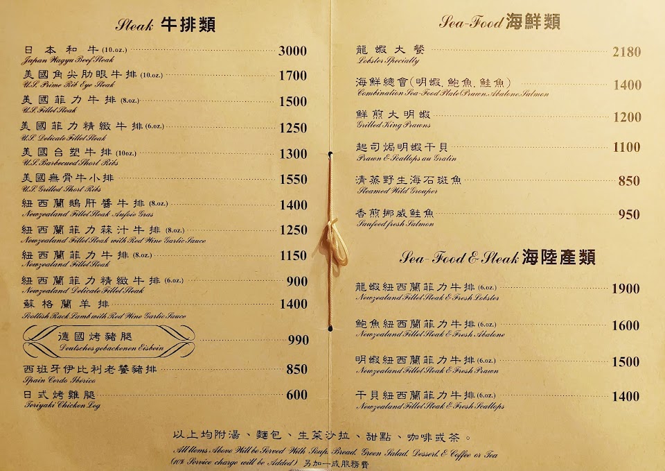 服務很好,;高效、禮貌、穩定。對於那些不懂中文的人來說,菜單上也有英文。裝飾和其他一切一樣都是老式牛排館風格。