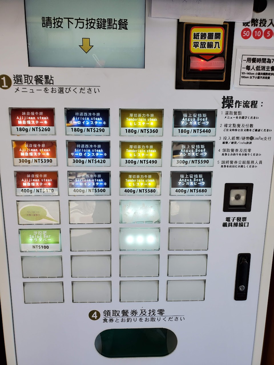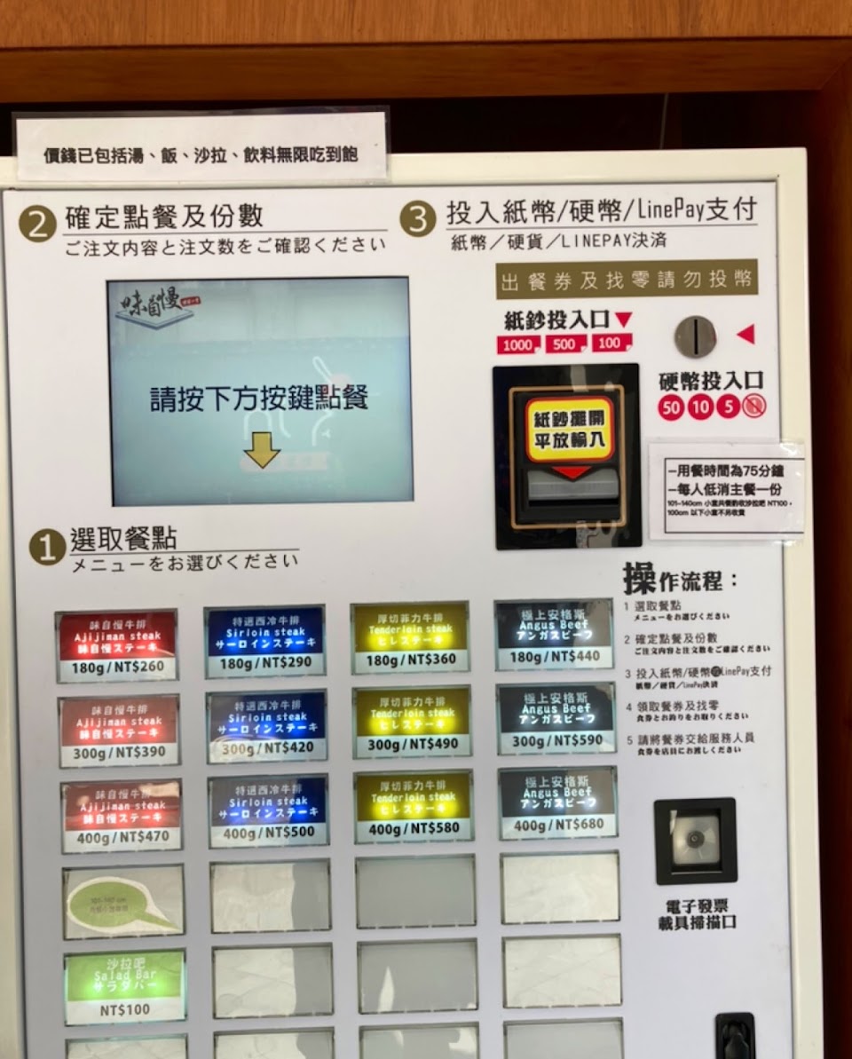 一律使用購票機點餐,現金和Linepay皆可