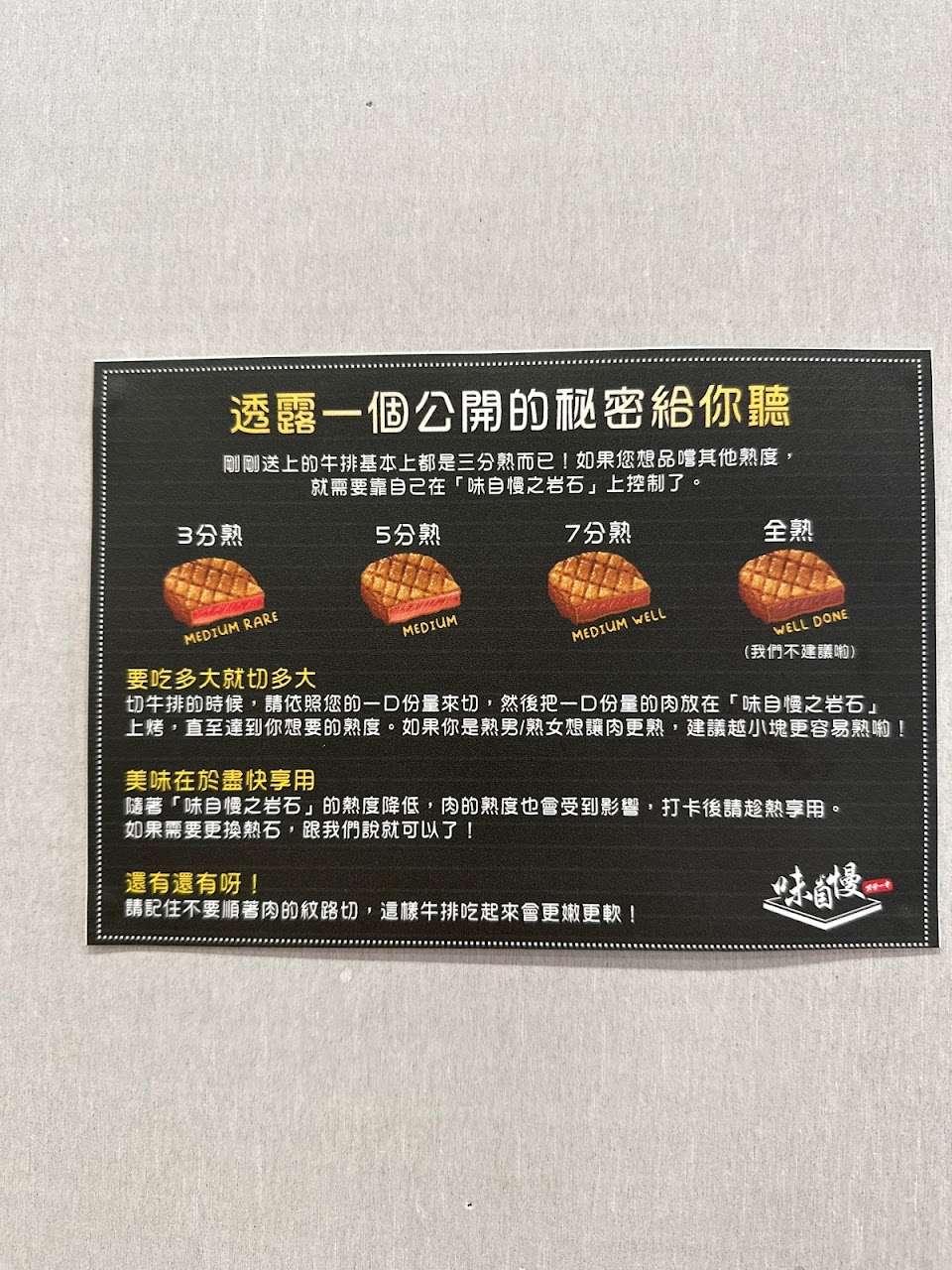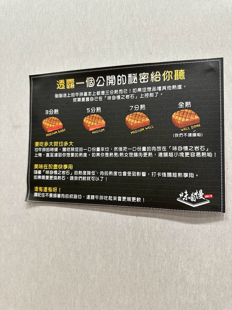 味自慢牛排有筋,3-7分熟都不錯