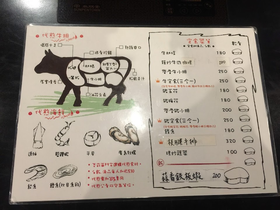 在地下室很容易忽略。但是樓梯下去後(也有電梯),會發現餐廳的服務台,可用餐也可購買冷凍肉品。採半自助式的定食(湯、飯自己添,可續碗)。菜色種類多,牛、蝦、豬、魚與咖哩…都不錯。有一成服務費。
