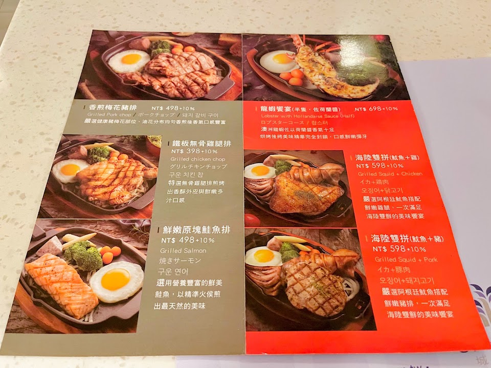 首先這家餐廳比較大的問題就是「主餐不好吃」,說真的我來吃過不少次了,除了鮭魚排之外,牛排、豬排、雞腿排我都吃過,其中牛排、雞腿排是到「不好吃」,而豬排還算過得去,朋友說鮭魚排也OK。