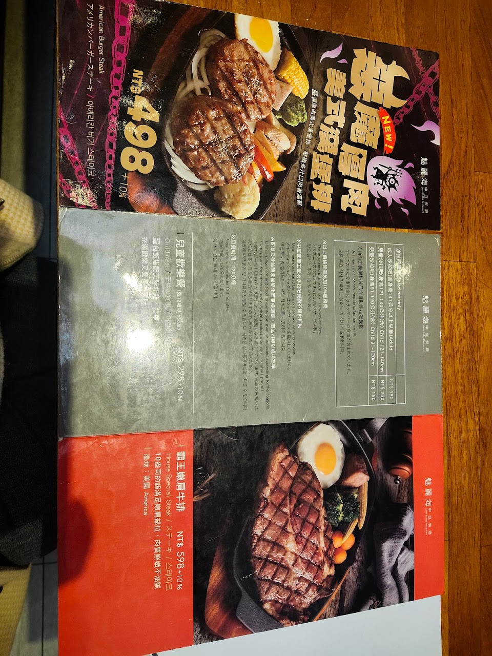 萬物都漲的氛圍下,台北市已經找不到排餐不到400元,可享沙拉吧吃到飽的餐聽,魚排、雞排398元、招牌牛排498元,需再加1成服務費,沙拉吧有基本的沙拉、前菜、壽司、意大利麵、滷肉飯、雞湯、玉米濃湯,還有白蝦、淡菜、甜點及冰淇淋,座位寬敞,服務態度也具一定水準,CP值在台北市熱門地段算蠻高的,但牛排外觀看起來煎的很漂亮也很可口,但咬起來只有「硬」一個字,不是煎太熟而是牛肉部位或品質的問題,上次點牛排筋很多,這次卻是硬到不行,所以本來應給4顆星,因此扣一顆星。