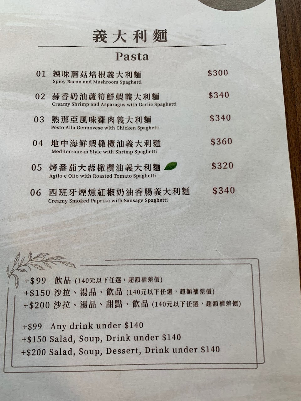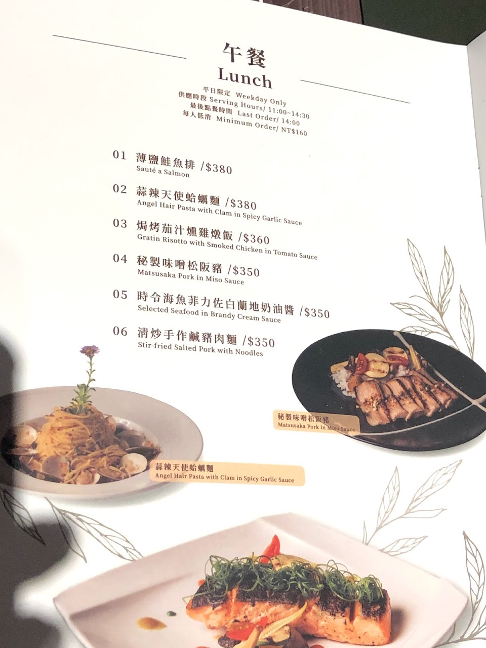 假日餐點680~820,另加一成。服務人員都很親切。但是用冷凍三色蔬菜的湯,大蒜麵包,蛋糕跟咖啡都令人失望……。