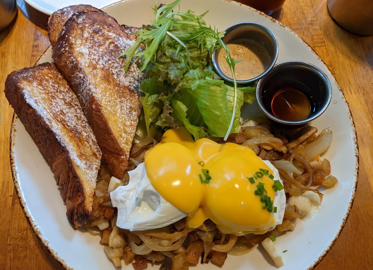 沒話說,超級推薦早午餐店。 唯一覺得怪怪的是班尼迪克蛋上面的荷蘭醬酸度有點不足? 還是其實根本沒有打算做荷蘭醬,已經有點偏起司醬了 好在下面選擇墊火腿剛好跟起司醬融合的不錯,好吃~ 餐點:5 服務:5 氣氛:4