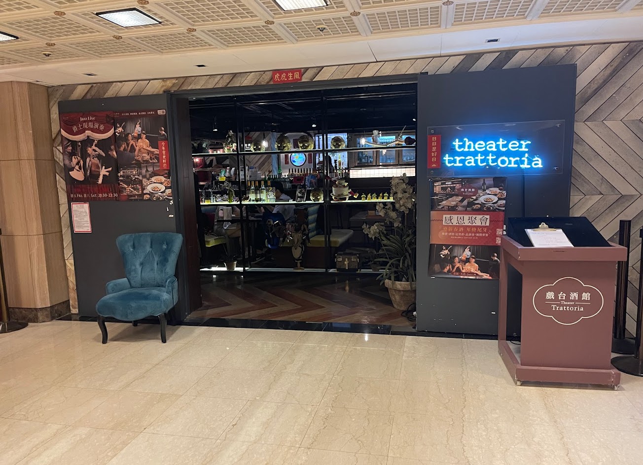 戲台酒館(Theater Trattoria)是位於國家兩廳院內餐酒館,是以劇場後台為發想,餐廳內擺放許多戲劇用的道具,裝潢相當有特色,仿彿就在劇場內用餐。