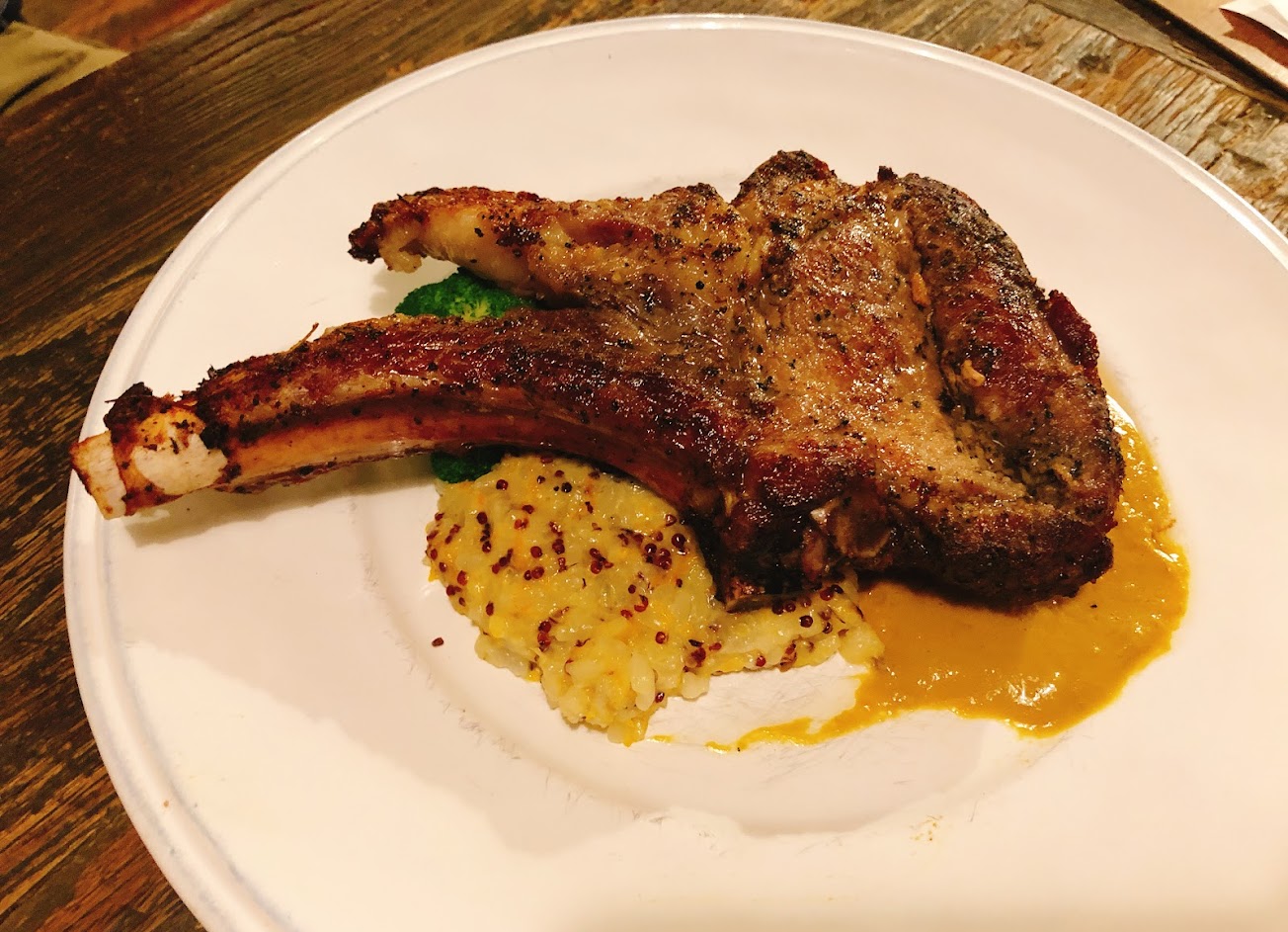 今天是第二次來農人餐桌用餐,這次點了戰斧豬排,cp值非常的高,豬排厚實。一般來說外面餐廳的戰斧豬都要500起跳的價格,但這邊只要380,還可以搭配甜點飲料等等的升級套餐。