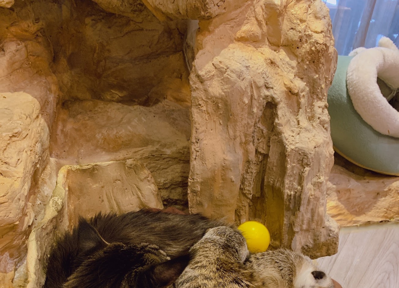 ,都沒有飄貓毛或動物味的問題,待下來很療癒,還能跟狐獴互動:)