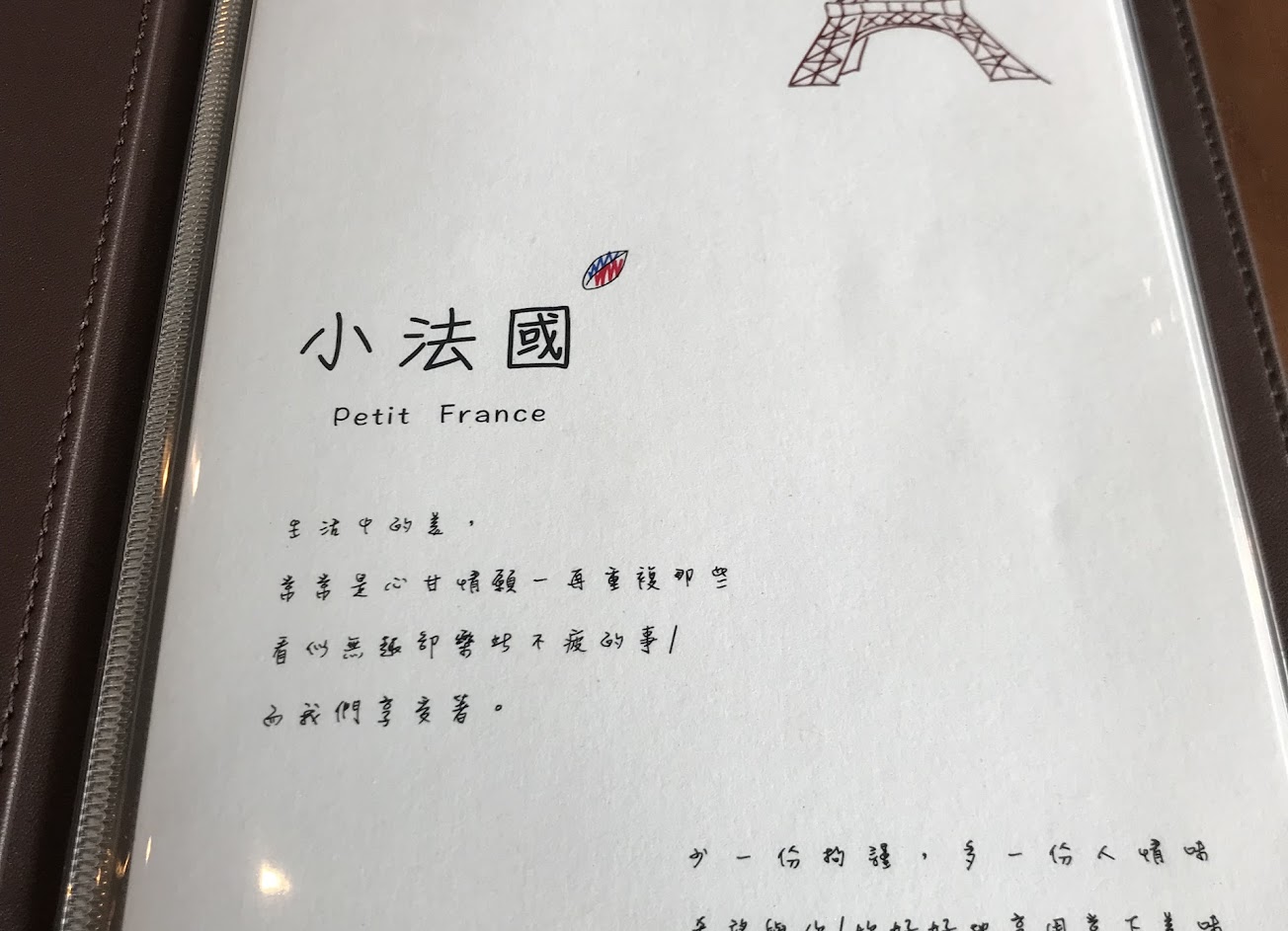 有別於市面上的餐館,小法國是一間專注於理想與食材的料理餐廳。 位置: 臺北市中心竟有捷運站步行1分鐘的法式料理餐廳。餐廳隱身在小花園內,讓初次來的朋友、走過路過的朋友,可以盡情在圍籬外伸長脖子,或是沒有壓力地翻閱菜單再決定是否入內。 空間: 高雅冷色調的主建築外是一圈木造小花園,小清新風格的陽台種了草花與迷迭香的香料有條不紊地排列,沒有雜草亂入,可知經營者的用心照顧。推開門進到室內,似有若無的輕音樂搶先營造氣氛,卻又完全不會喧賓奪主。從櫃檯、茶葉展示、黑板菜單都是經過精心安排。店內空間與店名一樣,遵循著「小」字,店內雖佔地不大,但因座位不多並不會感到擁擠,座位設計更具巧思,有靠窗2人座、室內2-10座都沒有問題。餐桌更是值得推薦,觸感極佳的木紋,讓手臂靠著用餐沒有玻璃冰冷的不適或木頭脫漆的黏膩感。木桌面積大小適中,擺了整桌的美食不會感到擁擠,多人分食時也不會距離過遠。 美食: 小法國的料理道道令人驚艷,是市面上很少看到的菜色。主廚從食材的嚴選到餐盤的擺設更是一條龍地全包,拿我本人最愛吃的田螺為例,酥脆的口感包覆田螺的咬勁根本捨不得放下叉子。驚艷的溫泉蛋菇(帝王蛋)也讓不敢吃生蛋黃的我也是一口接一口。牛排、脆皮雞一夜干、戰斧豬排⋯根本很難決擇的主餐,只好大家各點不同互相品嚐。假日的無菜單料理日,也是道道驚艷,但原諒非專業美食評鑑家無法一一記得、描述,只有親自來光臨一次,方能冷暖自知。 總結: 當你踏入一家店時,你期待的是吃到美食?沈浸在氣氛中?好好地坐著休息?還是單純享受一個夜晚?以上小法國都做得到。非常推薦的一間餐廳,充滿著理想與專業的料理,不可不試。