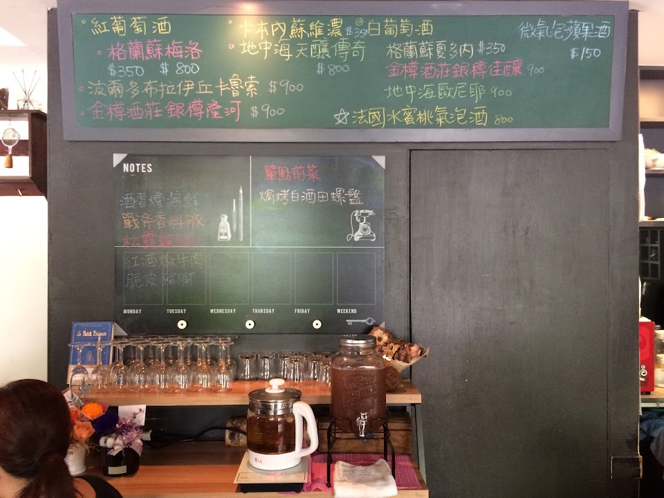 無固定菜色,但出餐固定有沙拉、麵包、前菜、湯、主餐、甜點跟熱茶(台灣茶為主)等等約10道。戶外座位區有小黑蚊,但氣氛仍不錯,有燭光搖映,很適合約會。 服務 內用 餐點類型 晚餐 平均每人消費金額 $1,000-1,200 建議的餐點 自製麵包 配雞油及奶油