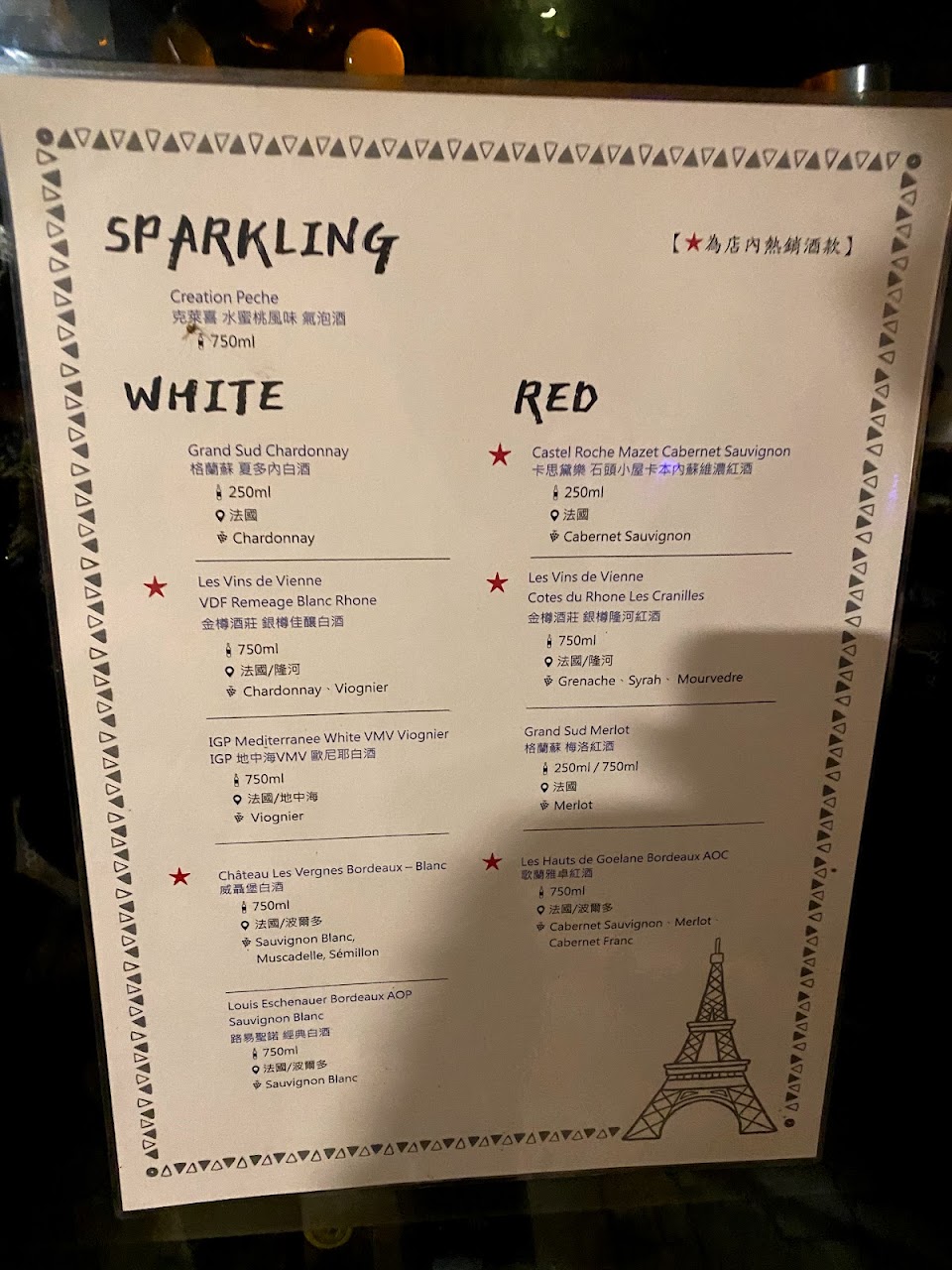 不值得再來, 完全不推, 沒有法國味的中餐西吃. 不難吃, 但也沒有值得一提的美味, 且份量奇少, 根本吃不飽, 每道開胃菜只有一小小小小小口, 每道小菜上來十秒鐘就吃完了, 然後等10多分鐘才會有下一道上來, 一餐吃下來至少得花二個小時. 大部份的時間都是在等待上菜. 吃過之後才發現, 網路上照片拍的美美的, 聲稱CP值特高的, 聲稱美味飽足的…幾乎都是網紅寫的業配文..別被照片騙了. 照片上看起來份量很大, 實際上超乎想像的小小小小小. 少少少少少..只夠塞塞牙縫..葡萄酒杯小, 碟盤小, 湯杯小, 餐具小, 茶壺小, 茶杯小到離了譜, 我在巴黎住了一年, 西非法語區及美國住了二年, 從來沒看過這麼少的菜量湯量, 及小的像家家酒用的餐具酒杯. 更妙的是所謂的香檳氣泡飲(可無限續杯)其實就是普通廉價的葡萄汽水, 而且要續杯還得要親自拿著小小小酒杯擠到櫃枱前自已加, 自己倒水, 店員是拒絕服務續杯及加水的, 在國外除了速食店外, 沒有任何餐廳會要求客人離開座位自己倒水的..真是奇葩.