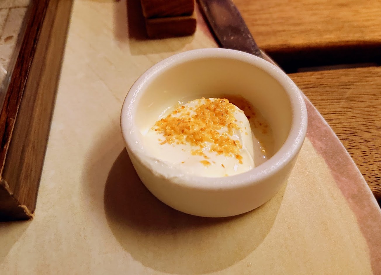 無菜單料理,會跟網路上的食記略有不同,以這個價位的套餐搭配還算推薦,但就以主餐來說稍微有點不夠驚艷。點了香料戰斧豬,里肌部位還是有點稍嫌乾柴,但配上香料部分就可以彌補一些,有貼心的附上手套可以抓著啃肋條品嚐較為鮮美的部分。