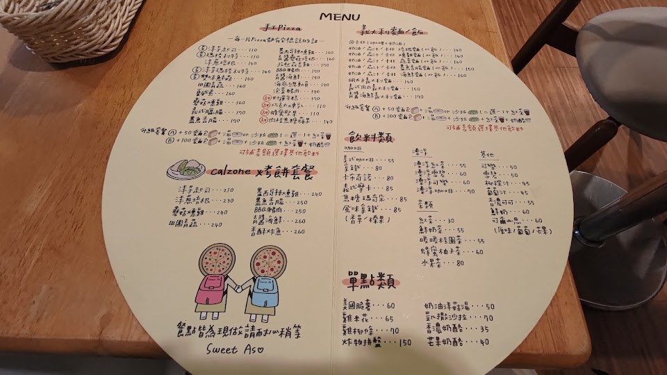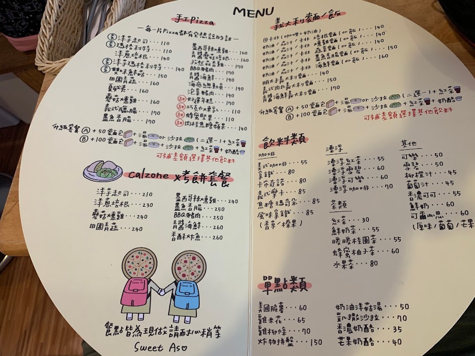 點餐: 進門告知幾位後店家會送上可愛的披薩菜單, 幾分鐘後店員會來點餐。