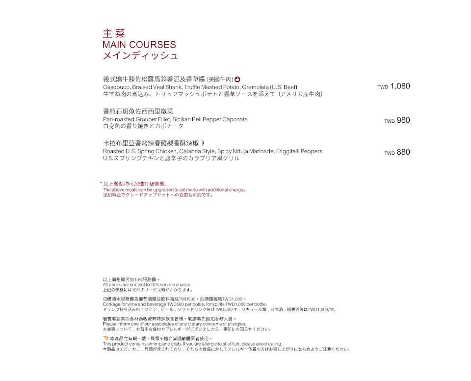週五晚餐時間是全滿的,點餐時間只到8:30。點了四到六人的套餐,前菜選項普通,Pizza比燉飯跟義大利麵好吃,龍蝦海鮮義大利燉飯是屬於清爽的口味,魔鬼雙味臘腸pizza蠻不錯的,肋眼牛排勝黑豚里肌。