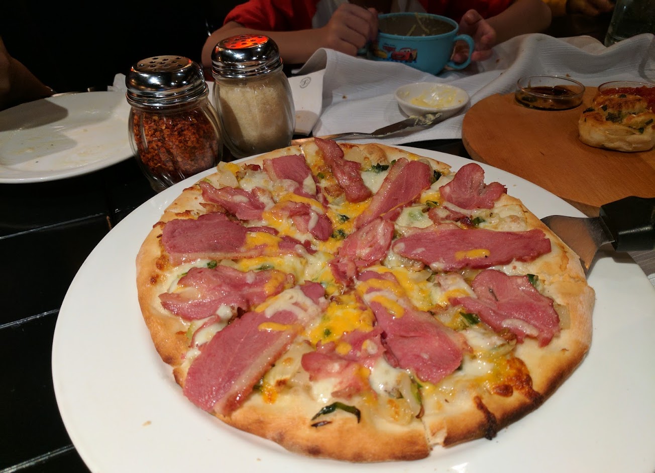黃金泡菜雞肉披薩蠻有特色的,餡料給好給滿,吃起來很過癮,推薦!不過雞肉是燻雞肉,覺得有點廉價感,換成雞腿肉應該會更好吃。