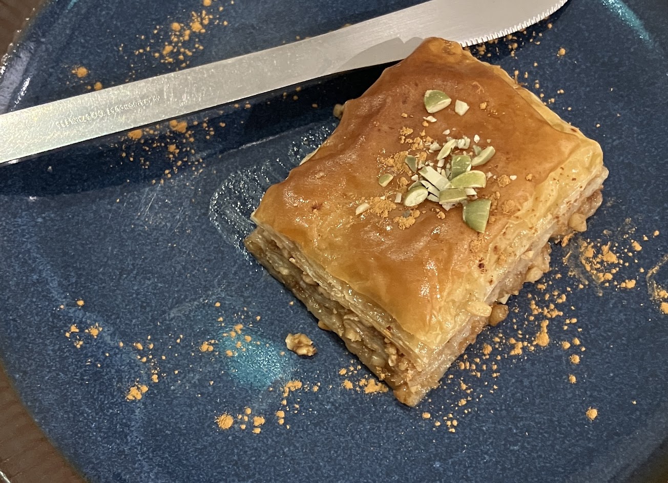 他們的甜點很豐富,一定要點,配著花茶或希臘咖啡。沒有甜點收尾就不像在吃希臘餐核桃酥、純露起司蛋糕是我女兒必點,還有燉蘋果這道甜點,在台灣少吃到,推薦你可以試試。