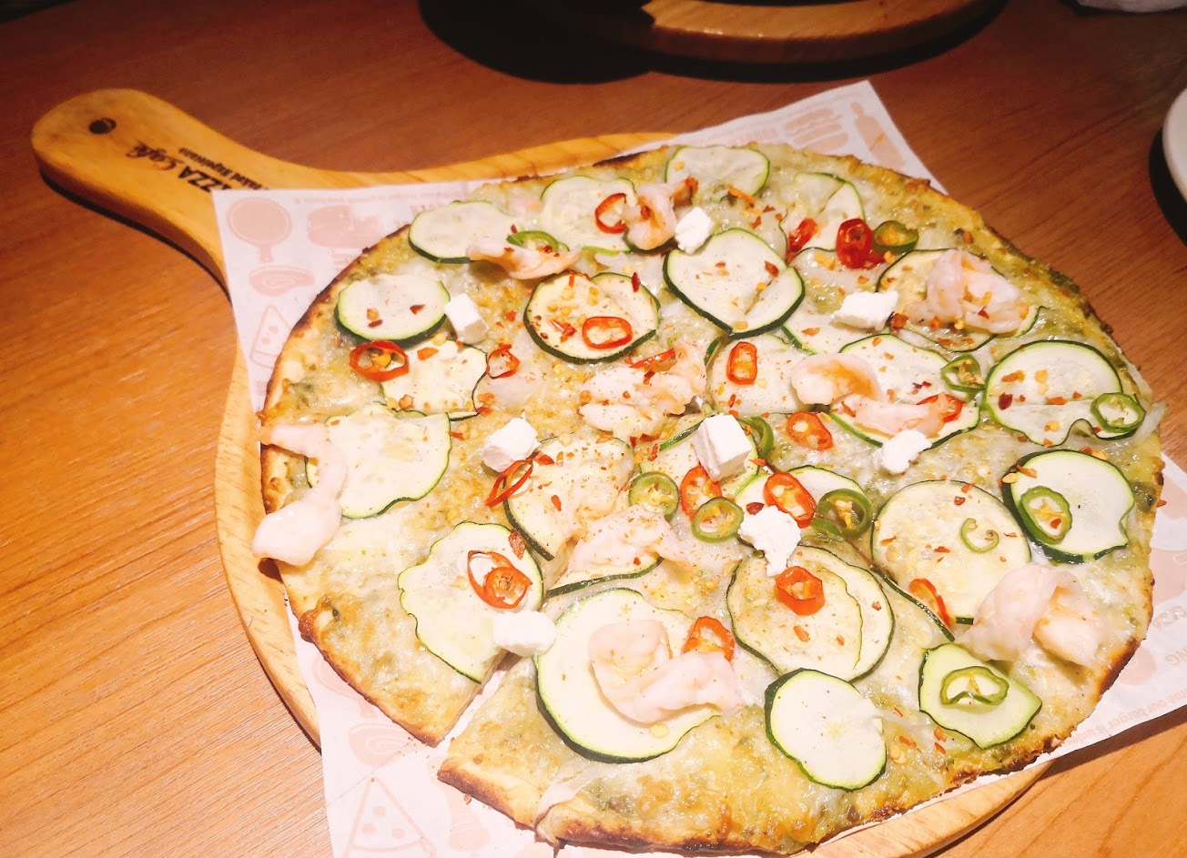 Pizza方面有分薄片跟厚片,個人吃起來感覺沒有差太多~ 就看個人喜好~ 松阪豬披薩蠻特別的,好像有加一些柚子醬在上面,吃起來很清爽,我們很喜歡,海鮮披薩的料有鋪滿,不錯!口味也很棒!