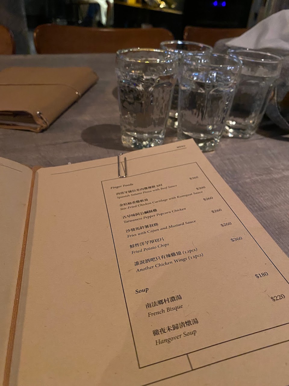 環境氣氛都舒服,菜單用心設計,酒好喝!