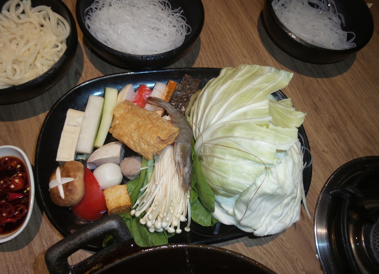 The seafood was fresh , the quality of meat is moderate and not to thick. The hot pot soup was way too salty that other dressing is not needed at all.