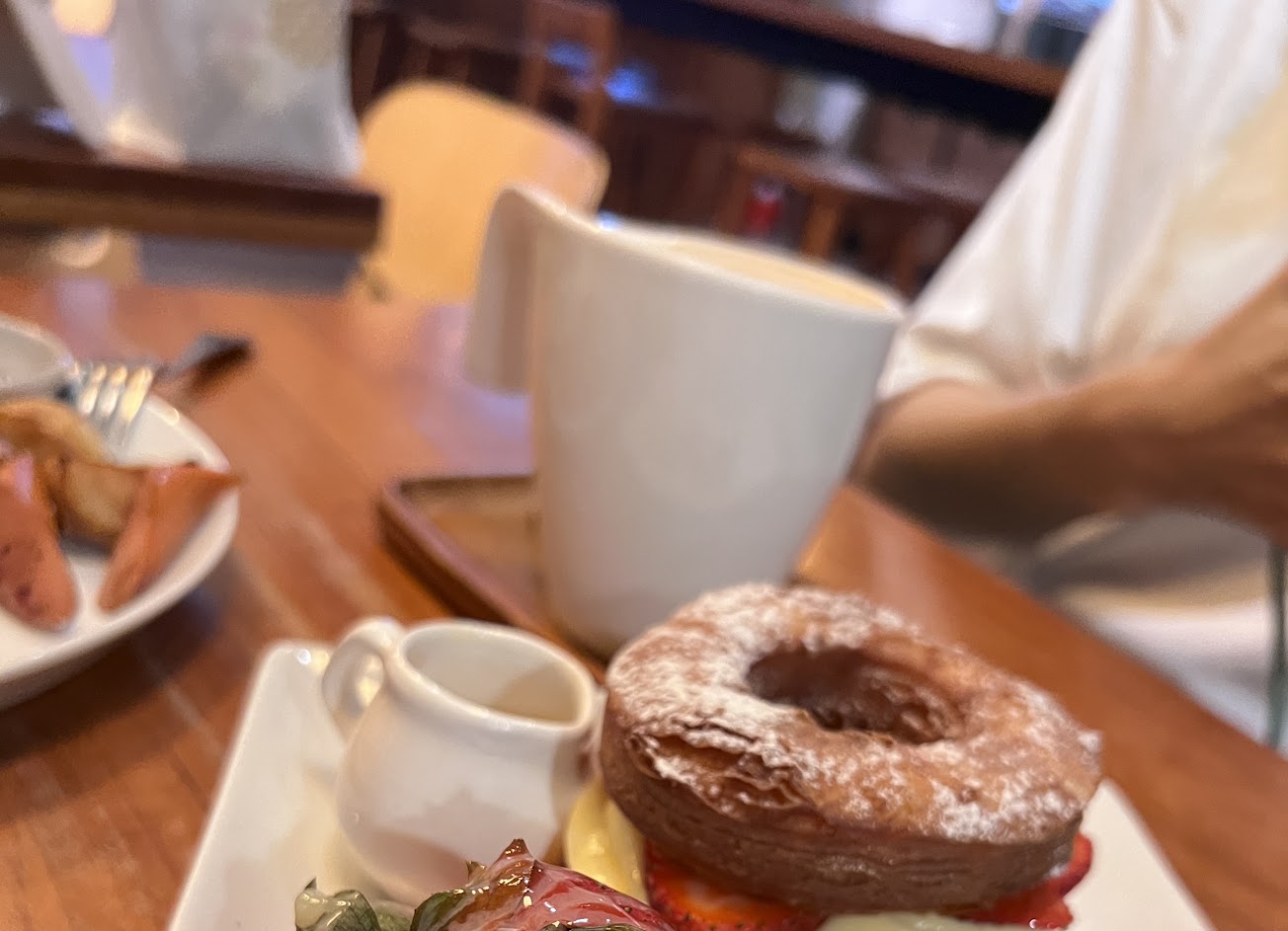 1.餐點的選擇不多,口味上很普通,點了義大利麵沒什麼記憶點,備餐不齊,菜單上很多甜點沒有,點了草莓多拿滋,油味有點重,有種雙胞胎甜甜圈的感覺。