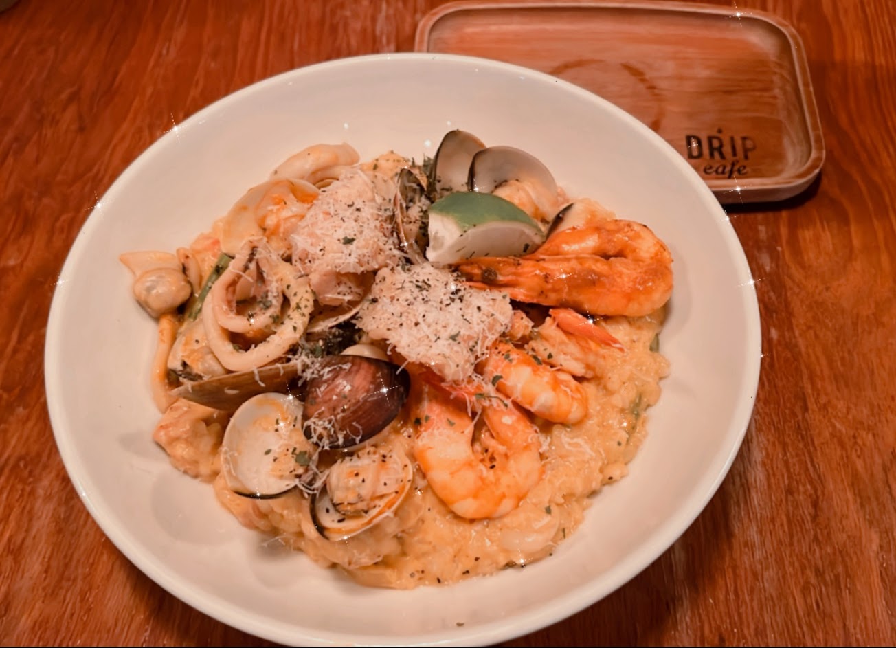 奶油蝦湯海鮮燉飯味足份量大推薦,叻沙海鮮意大利麵一般,另外點的黑糖奶茶以及奶蓋烏龍茶,較推薦烏龍茶
