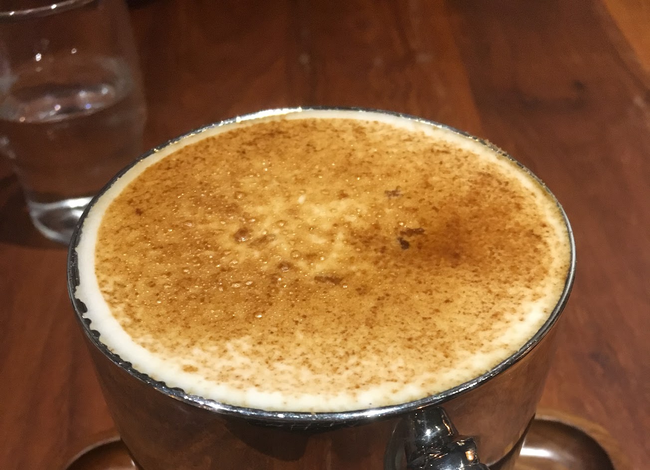 空間非常吵雜!聊天必須拉大嗓子,不是一個舒適的咖啡廳。義大利麵表現普通。招牌多拿滋CP值不高,上下兩片麵包炸過偏油,中間夾水果跟卡士達醬,然後旁邊放一球冰淇淋作結。咖啡冰球淋熱牛奶蠻噱頭,不過味道也普通。環境讓我不會想再光顧。
