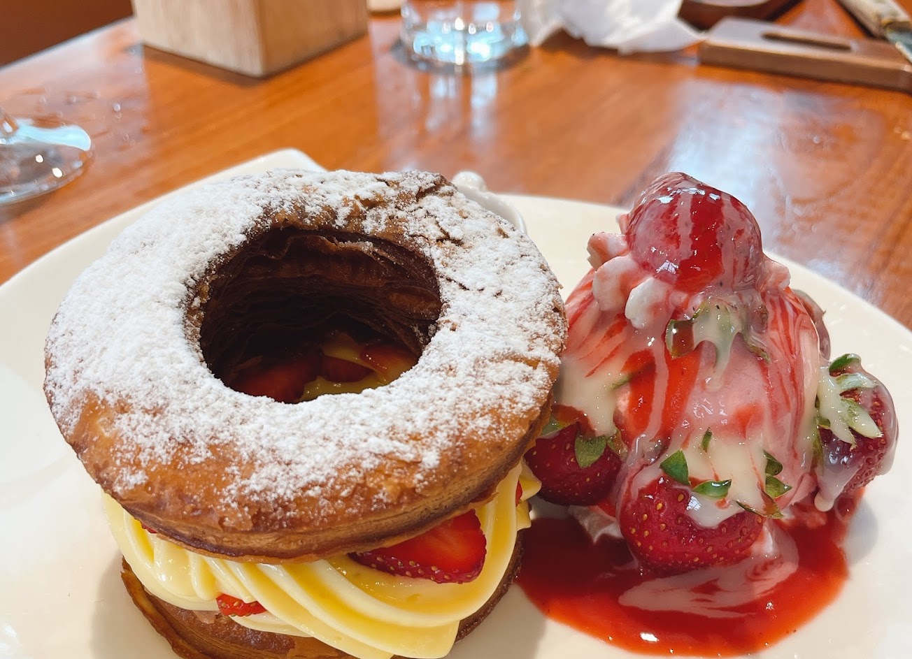 最後不得不說就是他們的招牌了吧,草莓可拿滋,雖然有些留言說油的味道有點重,確實是但只要配合草莓冰淇淋完全可以中和掉油味反而變成油香,所以一定要一次合在一起吃,就如同熔岩起司麵一樣,蹦出新滋味?
