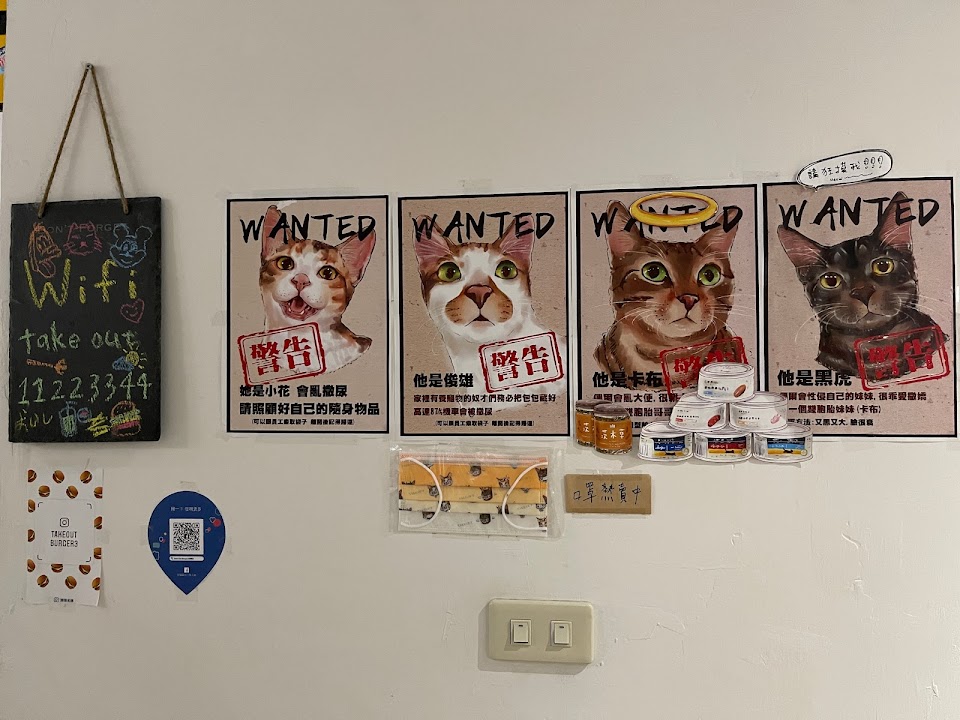 位於忠孝新生5號出口一出來,內用座位偏少,漢堡口味正宗好吃,有三隻店貓可能會把僅剩不多的位子佔走XD,想看貓又想吃漢堡的人一定要來~很可愛