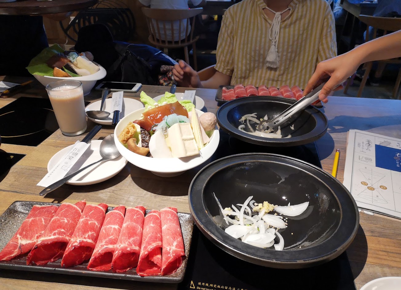 ?個人推薦:石頭系列火鍋(肉片會先用洋蔥和蒜炒至半熟,肉片撈起後,會加入高湯,再依個人喜好進行烹調),飲料較喜歡豆漿,豆漿紅茶的味道有點奇怪