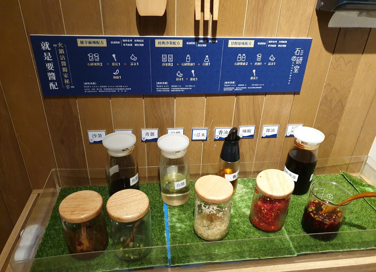 裝潢很漂亮,醬料是用實驗室燒杯裝的,同行化學系友人一直說覺得怪怪的? 沙茶醬很推,不過夾子不好用,所以醬料區稍嫌髒亂。石研鍋好吃,份量中等,就是剛好的飽度。桌子稍小,加上隔板碗盤都快擺放不下了。但是很貼心的是,桌下空間有兩層,中間那層可以放包包,下面那層可以腳踏,坐起來還挺舒服。吃完後衣服會有點味道。飲料可以續杯,紅茶不錯,也有豆漿紅茶可以選,很特別。 …