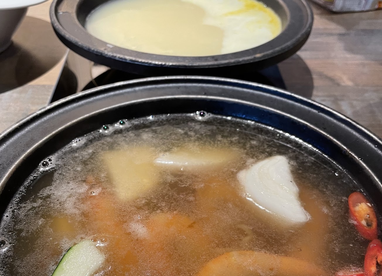 同時提一下,加湯這件事,貴店是由店員協助加湯,但是店員數量嚴重不足的情況下,我們的鍋好幾度都煮到幾乎乾了,一直瘋狂的招手、舉手、手都舉到酸了,才終於有店員注意到我們,前來加湯,我覺得真的很扯!