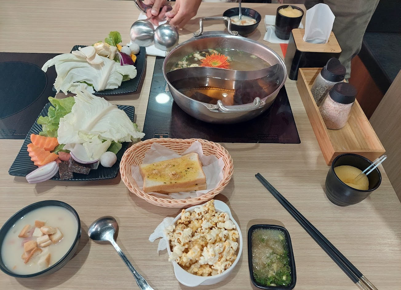 2023/01/09再訪,火鍋湯頭推薦雛菊雞湯,喝了很清爽,自助吧的配置有點更動,多了很多選擇,玉米濃湯、冬瓜排骨、麵包、飲料、霜淇淋,性價比比之前高。